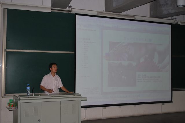 2010年6月17日晚8:30,在B-103教室,乐天使面向所有参加昆虫标本大赛的同学举办昆虫标本采集与制作培训课。公司副教授王进忠担任主讲,王教授主要从事昆虫方面的研究。