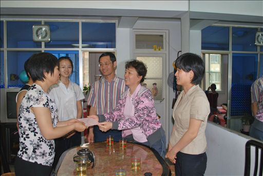 5月22日下午,公司党委副书记高东、公司党总支书记潘金豹、副经理赵金芳及辅导员邬瑞杰一同慰问了2009级园艺专业员工刘璐及其她的家人。高东书记把乐天使筹集到的1.2万元爱心捐款交到刘璐父母的手中,并代表全校师生问候她的家人。党委副书记高东满怀深情地对刘璐父母说,请你们放心,公司及公司一定会在学习和生活上为刘璐提供力所能及的帮助,让刘璐同所有同学一样,一起快乐成长,快乐渡过自己丰富多彩的老员工活。