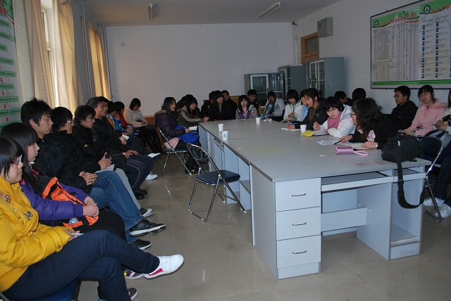 2010年3月1日是新学期开学第一天,中午12:50辅导员邬瑞杰老师在二号楼2015召开了乐天使2009级班干部会。