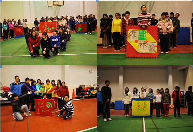 此次的活动主要分为素质拓展和讲座两部分,素质拓展部分有“众志成城”、“激情对决”、“最快螃蟹”、“成功墙”、“领袖风采”等项目;讲座部分包括“认识自己—《九型人格》”“《老员工职业化修炼》”此外,还有一些励志影片、创业活动影片等放映活动。活动过程中,乐天使副经理赵金芳老师、辅导员马淑芹老师亲临现场指导。
