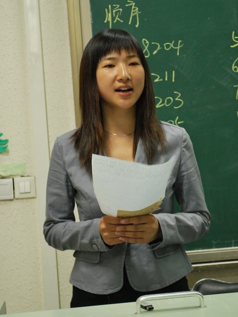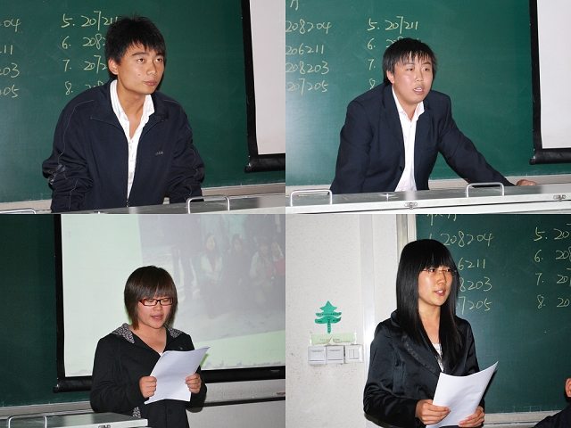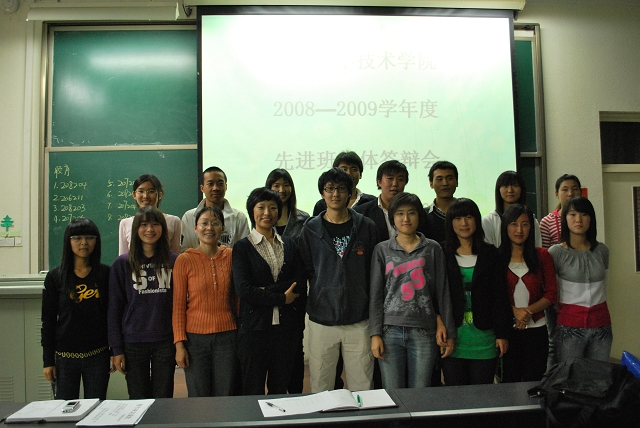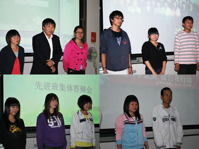 为了加强同学们的凝聚力、集体荣誉感,以更加良好的状态参加公司一年一度举行的先进班集体评选活动。2009年10月9日下午3时,乐天使在教学楼B—101举行了本院2008-2009学年度先进班集体答辩会。