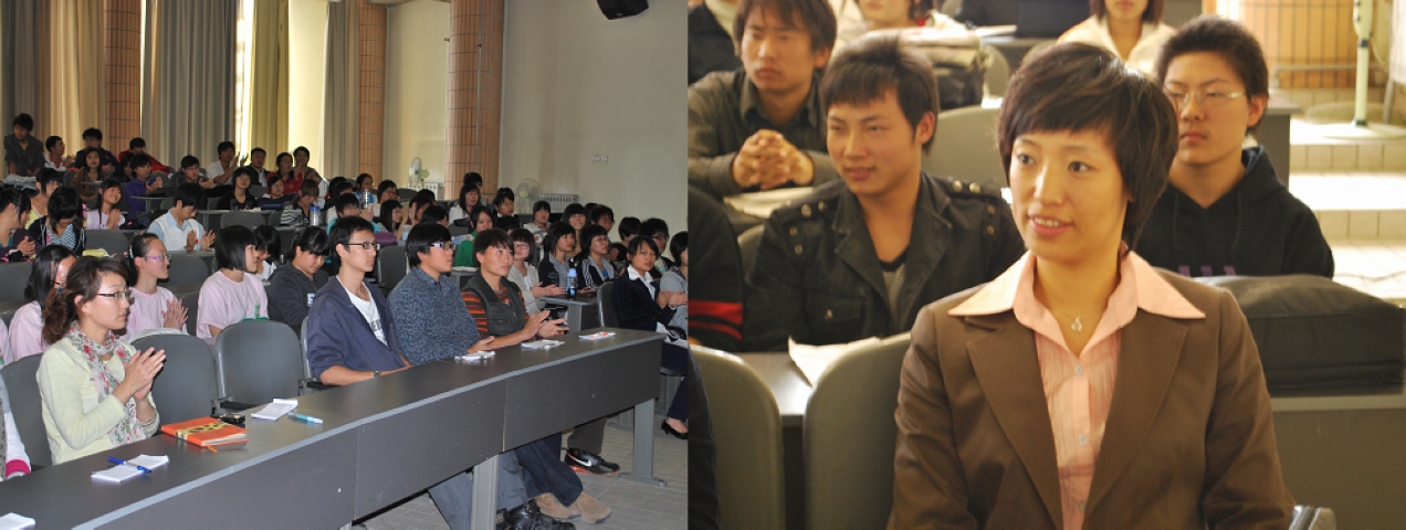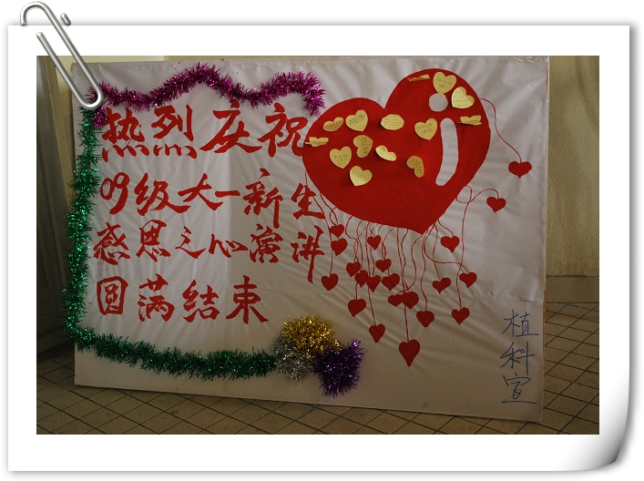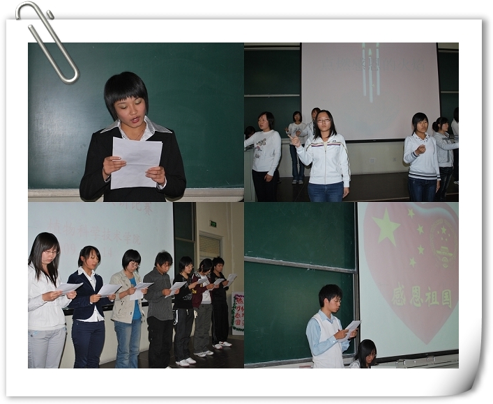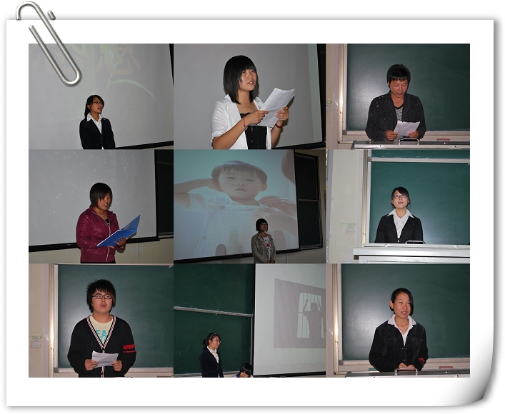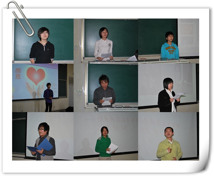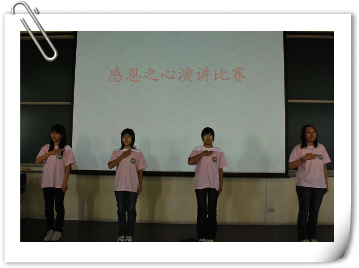 2009年10月14日下午1:30,乐天使在教学楼B403举办了2009级新生感恩之心演讲比赛。辅导员马淑芹、邬瑞杰,员工会、信息中心几位员工干部担任评委。