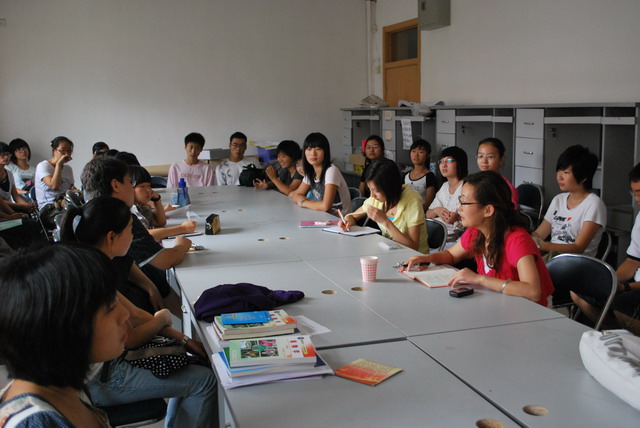 2009年9月1日中午12:30,乐天使209级新生宿舍长及各班班助在2号楼2015室举办校园生活交流会。