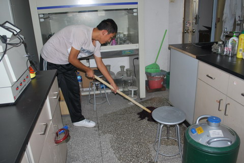 为迎接18日的北京市植物生产实验教学示范中心的揭牌仪式,2009年9月17日下午,乐天使208251、208252、207241、207242班的同学义务为实验中心和实验A楼五、六层的办公室进行了义务清洁大扫除。