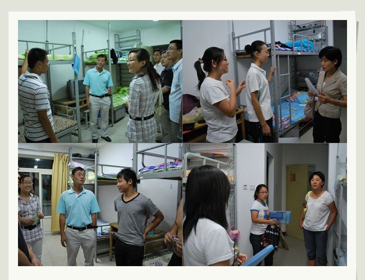 潘金豹书记对新生非常关心,关切地询问宿舍状况,所带生活用具是否齐全,并叮嘱他们相互帮助,团结友爱。副经理赵金芳每到宿舍都嘱咐同学遇到问题及时向校院老师反映,亲自仔细察看住宿条件,积极帮助同学解答并解决及时问题。班主任和班助对新生情况做了细致的调查,积极为班中贫困生解决书本等问题。同时,希望他们好好休息,尽快适应现在的生活,尽早进入学习状态。