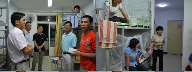 2009年8月28日晚上,乐天使院领导带领辅导员、2009级班主任及班助前往宿舍看望新生。