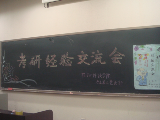 2009年4月1日,植物科技公司员工第三党支部成功举办考研经验交流会,面向全院同学进行一次近距离与学长交流学习经验的活动。