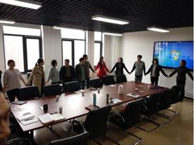 沙龙以两个热身活动开始。首先是所有人围成圈,自我介绍并且说明参加沙龙想得到的收获然后做一个专属自己的动作;其次是拍拍操。冯静老师由此引出主题,询问大家的收获,她说这些动作可以让大家内心多一份大度。