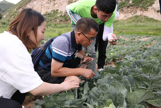今天由带队老师郝娜、园艺专家谷建田老师和几位同学组成的技术指导组在四岔口乡关晓娜书记的带领下来到了当地种植荷兰豆、甘蓝和豆角的田地,老师发现田地中荷兰豆的病虫害非常严重,经与关书记交流后了解到四岔口乡农作物种植缺乏技术指导,全靠农民自己摸索,导致该地的荷兰豆和豆角没有及时防治而发生病虫害,比如荷兰豆的根腐病、甘蓝的病虫害以及豆角的病毒病等。随后专业老师现场进行了技术指导,并告知农户切不可连茬种植同一科的蔬菜,容易发生病虫害延续的现象。技术指导帮助农民扫除了一些农作物种植盲区,为四岔口乡技术脱贫奉献力量。