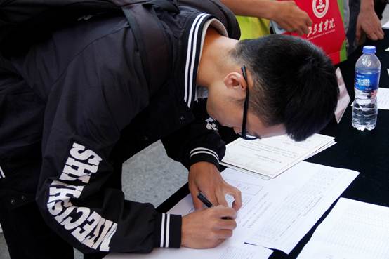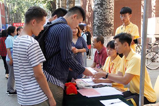秋高气爽,暖意迎新。伴着和风与明媚的阳光,同学们陆陆续续来到乐天使服务台,在办理好相关入学手续后领取资料袋及校园卡,与家长进行合影留念,然后在乐天使志愿者的带领下去往宿舍。