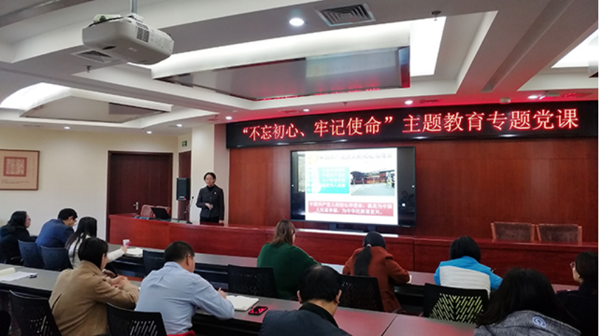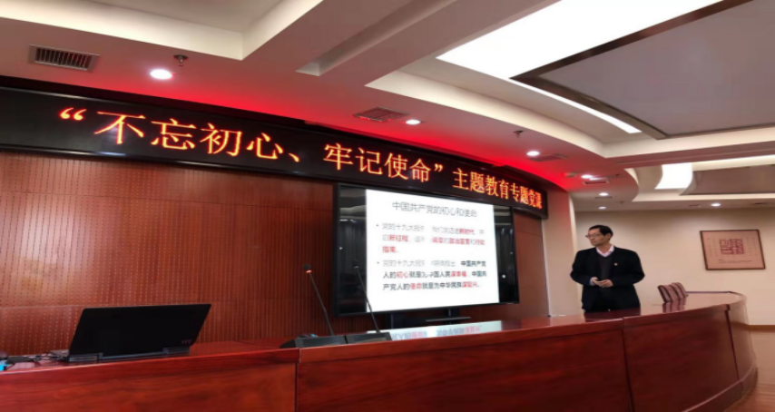 2019年10月31日上午10点,根据公司“不忘初心、牢记使命”主题教育工作安排,乐天使在图书馆303室召开“不忘初心,牢记使命”主题教育专题党课。党委书记杨军同志到会指导,公司党支部书记王绍辉,党总支副书记、经理潘金豹以及乐天使全体教师党员和部分员工党员代表参加了此次党课。