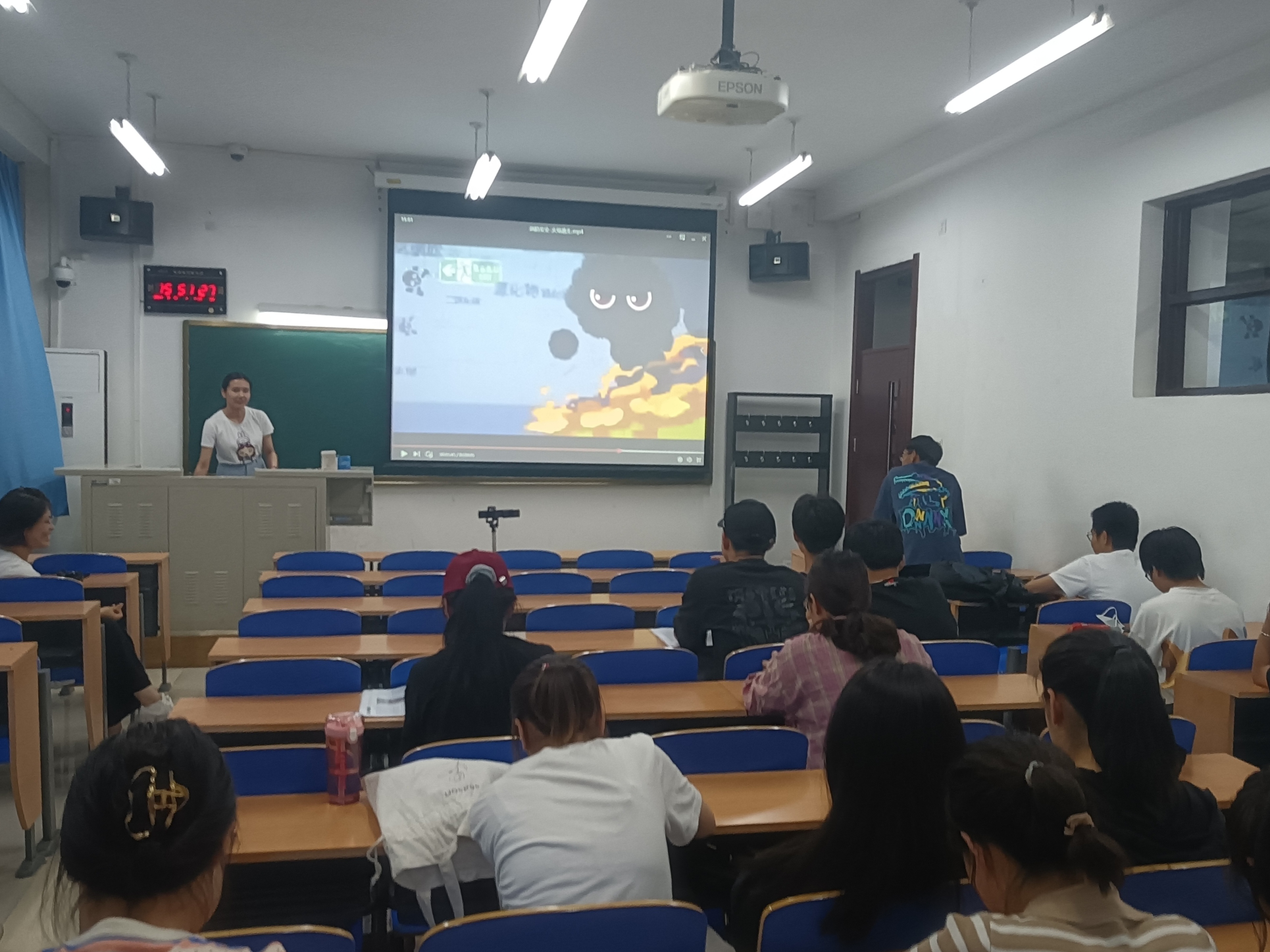 其次,由各班班长组织对同学们进行了消防安全教育,宣传学习并贯彻了我国“预防为主,防消结合”的消防工作的基本方针,使同学们了解了消防安全知识,火灾扑救常识,掌握了基本的灭火、自救和逃生的方法,提高了同学们面对火灾逃生的能力。