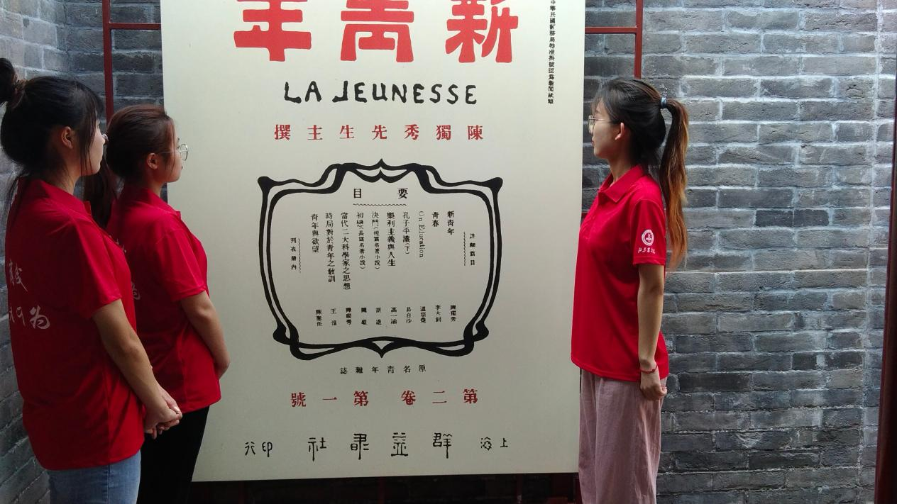 实践团首先参观并学习了有关《新青年》的展览,展览主要介绍了《新青年》的⼏个发展时间段和它所起的作⽤及地位。通过参观成员们学习到《新青年》是顺应时代发展要求的产物,它培育了当时那一代的有志青年,指引着时代前进的步伐。虽然《新青年》存在的时间短暂,但作为马克思主义在中国早期传播的主要载体,它担负并出色地完成了早期中国共产党人向国民宣传自己信仰和主张的特殊使命,忠实地记录着共产党人的初心,对中国共产党创建,对大革命的兴起,有着不可替代的作用。
