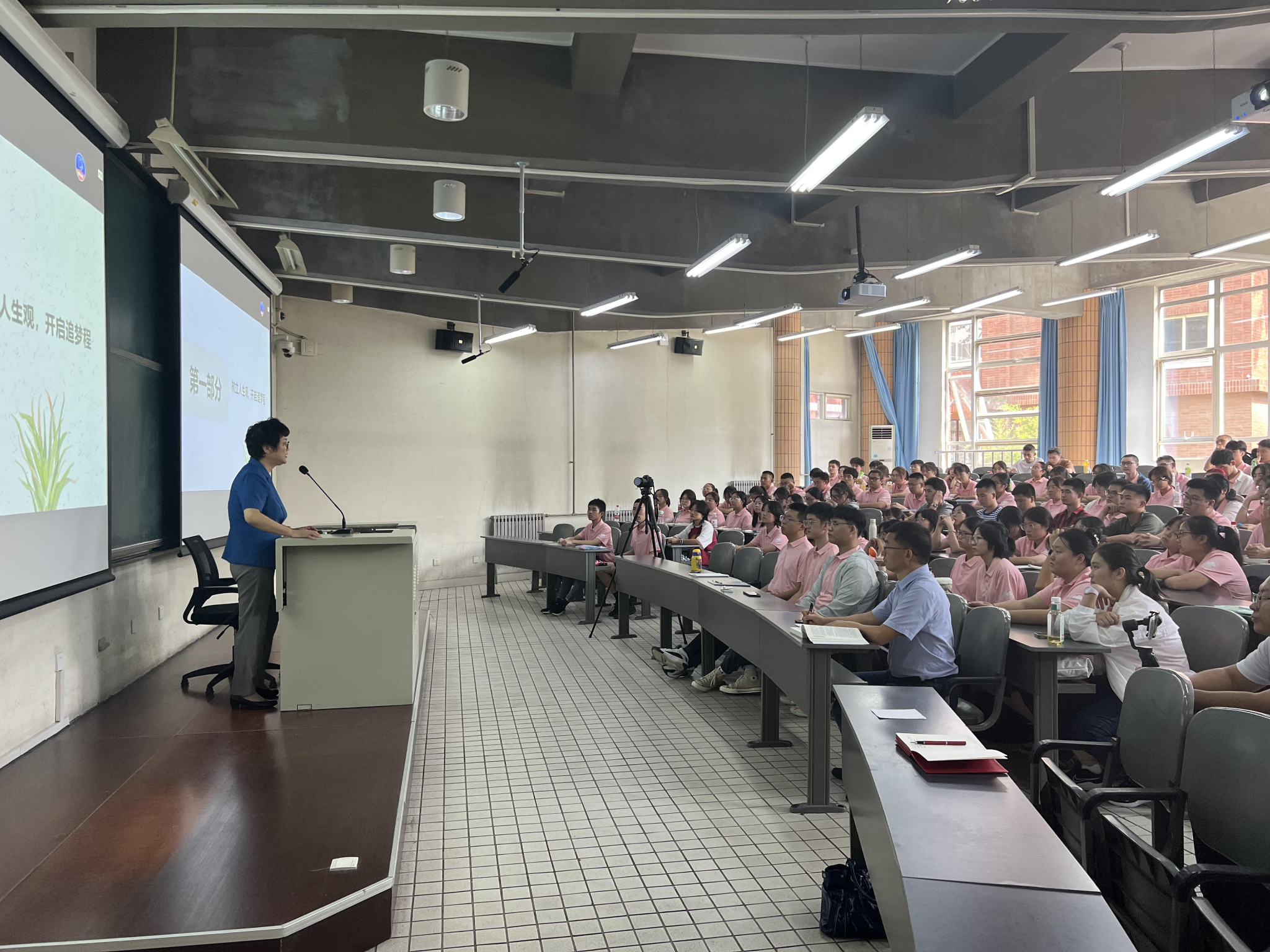 汤洁主要从“树立人生观、开启追梦程”,“养成好习惯、锤炼硬本领”和“以梦为马、不负韶华、脚踏实地”三个方面给2023级新生上了大学后的第一堂课。汤洁希望,同学们要树立远大理想,不怕艰辛,敢于在广阔的田野上“自找苦吃”,将论文写在祖国的大地上。同时,同学们要积极参与社会实践,注重将课堂所学与实践需求相结合,在田间地头治学问、解民生。汤洁指出,一代人有一代人的担当,新时代同学们要勇担强农兴农的时代担当,为全面推进乡村振兴贡献青春力量。