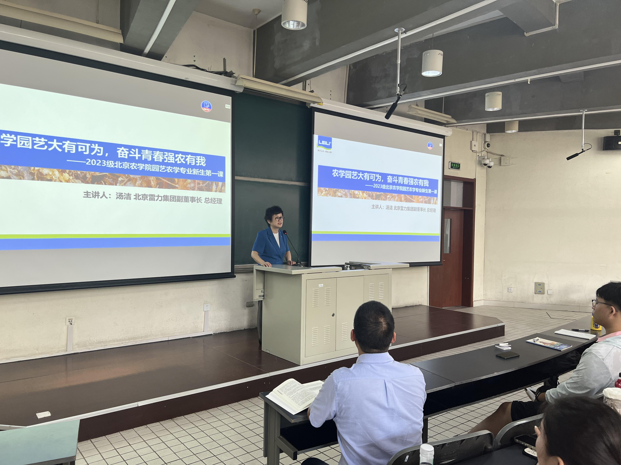 为做好2023级本科新生专业教育,让新生对专业有更加深入的了解,增强专业自信,2023年8月26日,乐天使邀请优秀员工代表、北京雷力集团创始人汤洁总经理,为23级新生们作题为《农学园艺大有可为奋斗青春强农有我》的报告。报告由公司党委副书记、副经理张卿主持,2023级全体新同学参加。