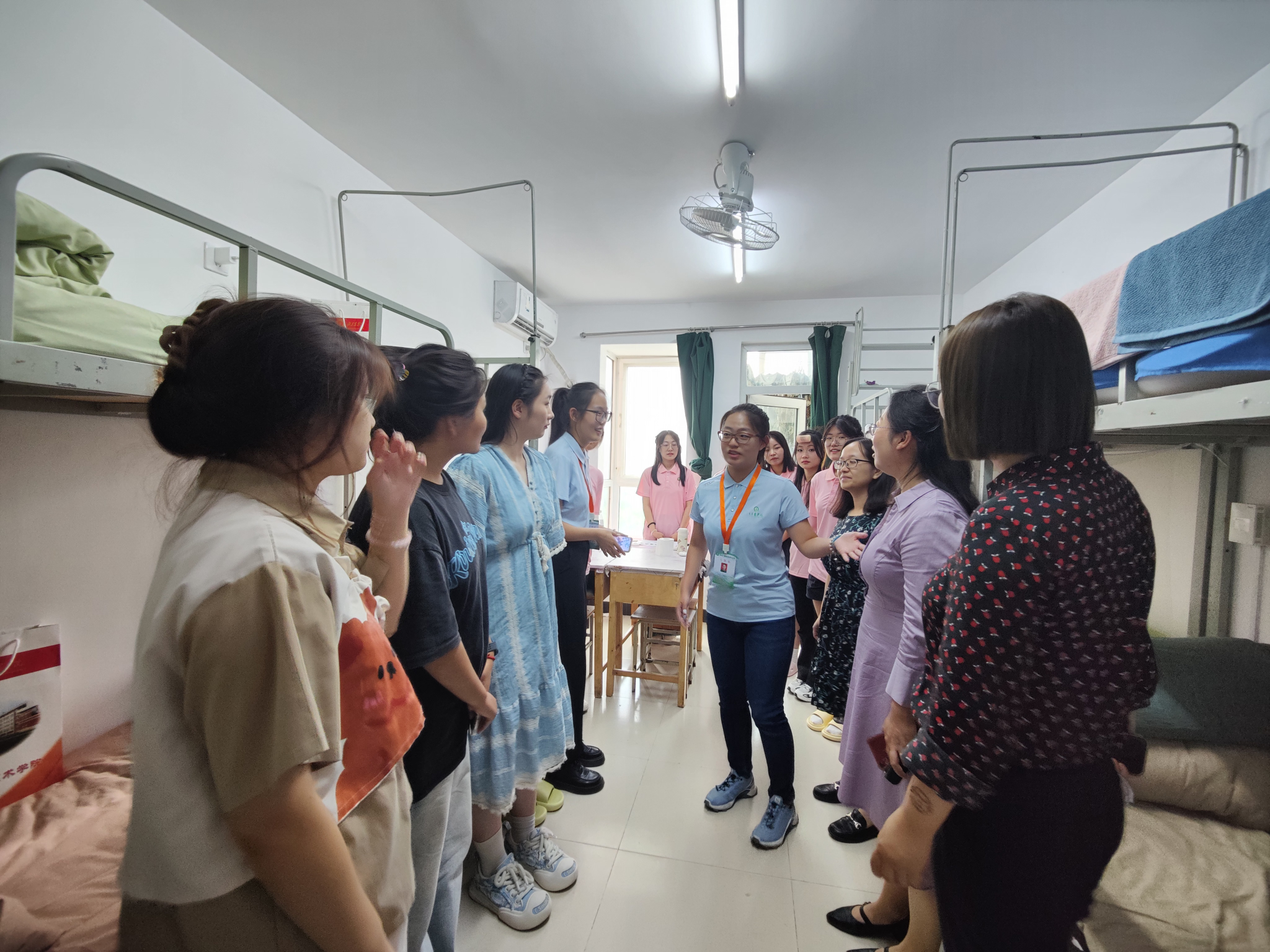 为了解新生生活状况和需求,鼓励新同学尽快适应大学新生活,2023年8月25日,乐天使领导班子带领辅导员、班主任和班助走访宿舍慰问新生。