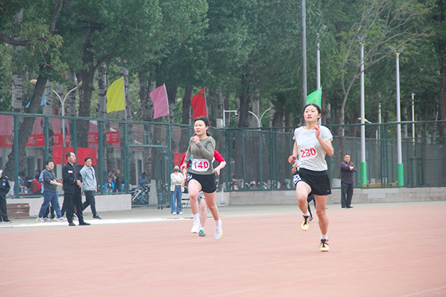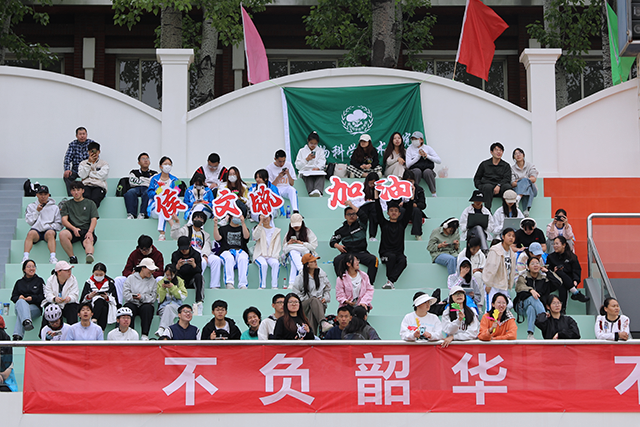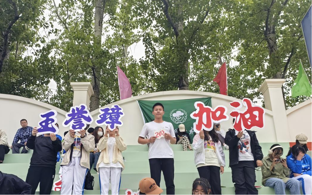 比赛进行中,坐台上响起“加油,加油”的喊声,这响亮的声音在操场上空回荡,鼓励着运动员们奋力向前,赛场气氛一片欢腾。