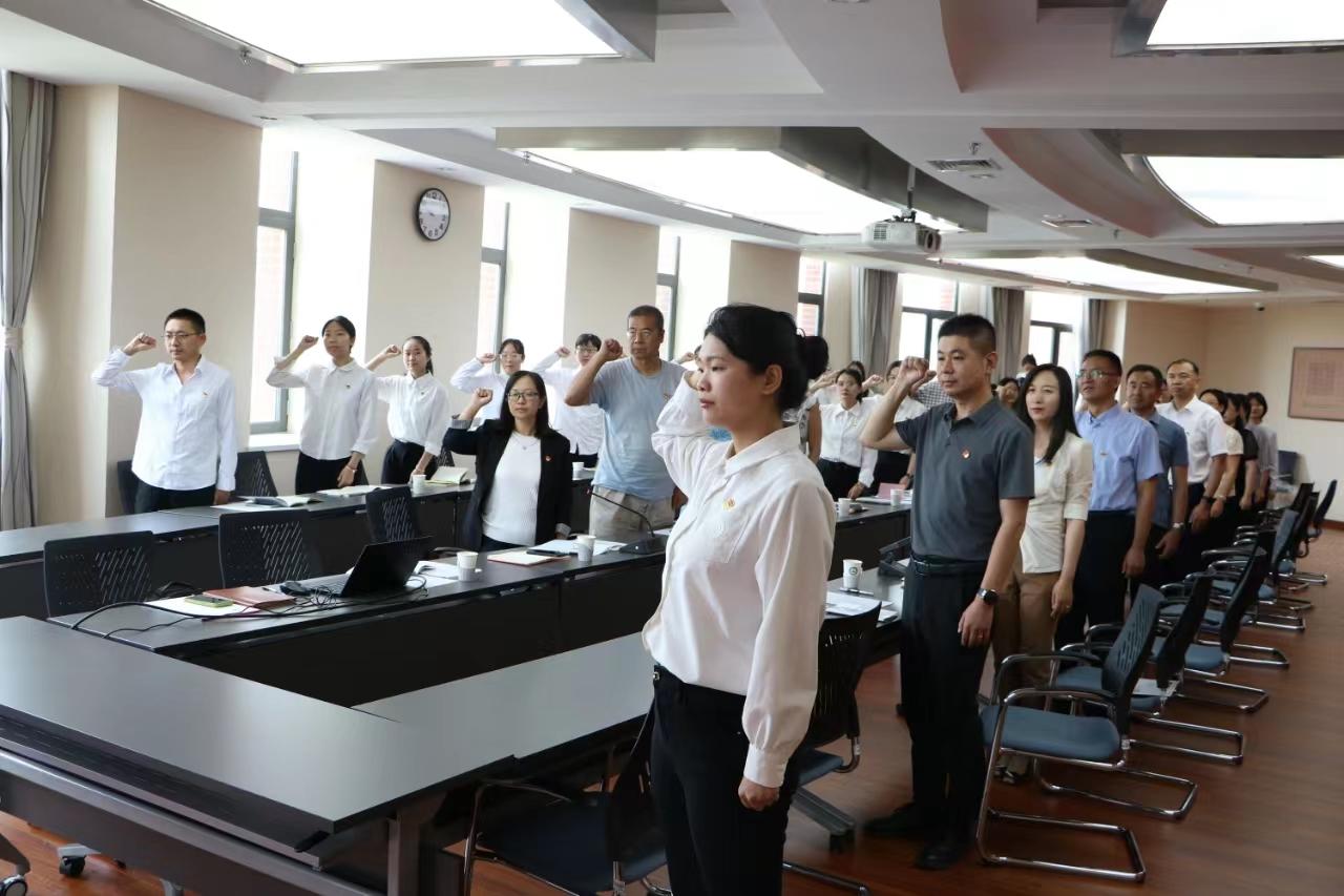 集体观看了《“七一勋章”获得者——治沙英雄石光银》宣传片,学习了共产党员治沙英雄石光银信仰之坚定、对党之忠诚、干事之笃实、律己之严格的榜样精神。公司党委委员张杰领学了《中国共产党纪律处分条例》第八章对违反廉洁纪律行为的处分,3名教师党员和2名员工党员结合自己教学、科研、社会服务、人才培养及学习分享了党纪学习的体会和心得,大家一致表示要以党纪学习教育活动为契机,不断提高自己的政治素养和业务能力,为党的教育事业和公司的发展贡献自己的力量。全体党员重温入党誓词,提醒每名党员牢记对党的庄严承诺,以实际行动践行入党誓词。