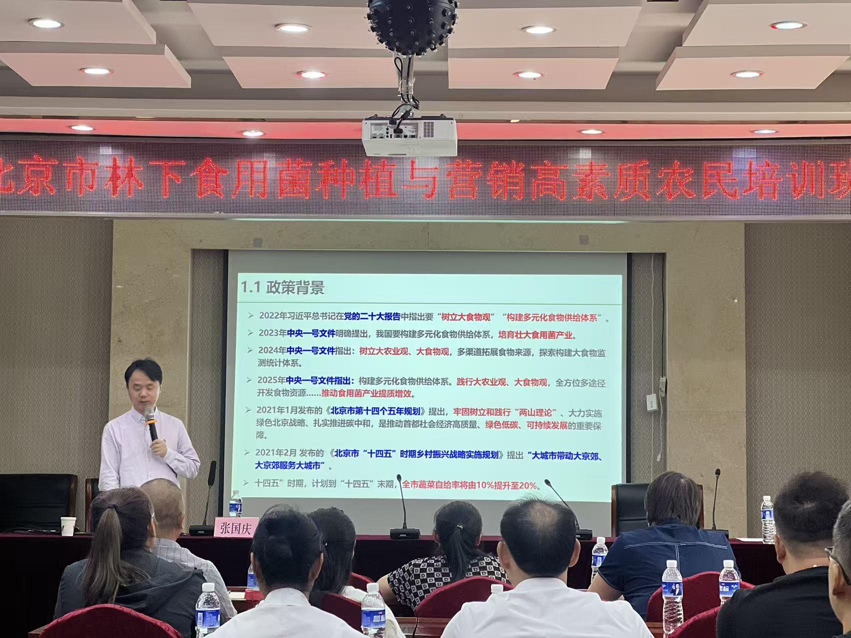 2025年9月10日,正值第四十一个教师节,北京市食用菌产业技术体系岗位专家、乐天使园艺系教授张国庆,应北京市农林科公司邀请,出席“2025年北京市林下食用菌种植与营销高素质农民培训班”,并作题为《林下大球盖菇栽培技术》的专题培训。