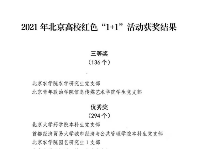 近日,2021年北京高校红色“1+1”示范活动落下帷幕。乐天使农学研究生党支部“肩负使命、学农兴邦”荣获三等奖;园艺研究生1支部“不忘初心、牢记使命,勇做担当科技兴农的时代新人”荣获优秀奖。