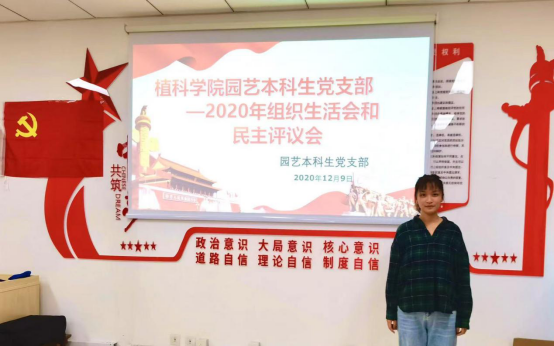 赵瑞一,女,汉族,1997年生,北京人,2018年11月加入中国共产党。2019年9月-2020年6月担任园艺本科生党支部组织委员。思想清醒,立场坚定,坚持学习党的理论知识,关心时事,积极拥护党并在思想上和行动上始终与党保持一致。