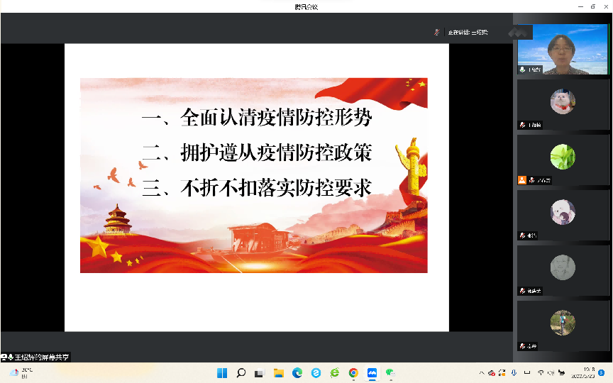 为深入学习贯彻习近平总书记关于疫情防控的重要指示精神,深化全院师生对当前疫情防控形势复杂性和严峻性的认识,贯彻落实北京市和公司疫情防控相关政策,5月23日晚,乐天使通过腾讯会议召开全院大会,公司党总支书记王绍辉和经理秦岭为师生讲授了一堂生动的疫情防控“大思政课”。公司全体教职工、博士后、联培博士和在校员工参加了会议,会议由秦岭经理主持。