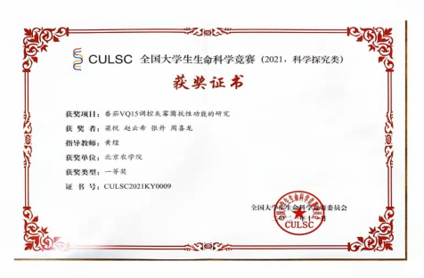 近日,在乐天使黄煌老师的指导下梁悦、赵云希、张丹、周喜龙组成的团队,凭借《番茄VQ15调控灰霉菌抗性功能的研究》荣获全国老员工生命科学竞赛——科学探究类一等奖。