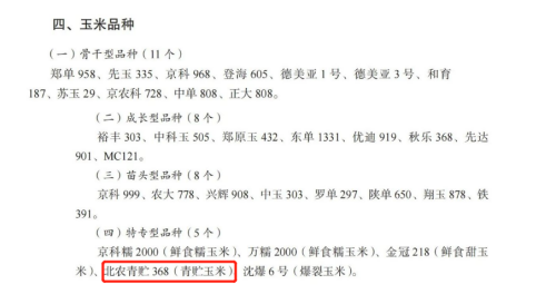 近日,农业农村部首次发布《国家农作物优良品种推广目录(2023年)》,重点推介10种农作物、241个优良品种,聚焦“米袋子”(水稻、小麦、玉米)、“油瓶子”(大豆、油菜、花生)、“篮子”菜(马铃薯、大白菜、结球甘蓝)及重要战略农产品(棉花),按照品种推广应用规律,将推广品种划分为骨干型、成长型、苗头型和特专型等四种类型,推出较为完整、递次推进的品种推广梯队,引导推动品种更新换代,促进大面积生产单产水平提升。公司科研团队培育的青贮玉米新品种‘北农青贮368’成功入选推广目录,也是特专型青贮玉米唯一入选品种。