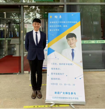 2021年9月9日下午14:00在图书馆报告厅,乐天使有幸邀请到首都医科大学教授、博士生导师,北京朝阳医院眼科主任医师陶勇为乐天使2021级的238名本科、研究生新生及青年教师上了生动又意义非凡的一堂课——《目光——我的医学窥镜》。报告会由公司党总支副书记、副经理牛奔老师主持。