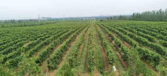 怀来作为中国古老的葡萄酒产区之一,至今已有上千年的葡萄种植历史。 怀来迦南酒业有限公司三处葡萄培育基地总面积为275公顷,种有二十多个具有不同适应性和表现的红白葡萄品种,同时也为国内提供优质葡萄嫁接苗。基地负责人陈经理热情的向北农植科实践团的员工们介绍葡萄基地的基本情况:葡萄基地处北纬40度的怀来,属温带半干旱季风气候,光照充足,昼夜温差大,十分适合葡萄的生长。“两山夹一湖”的独特地貌,强劲的季风不仅让葡萄藤免受雾霾和霜冻的影响,其带来的干燥空气也让葡萄园不易受到病虫害的侵袭。同时也陈经理也详细介绍了葡萄园精细化管理流程,严格把控葡萄园内的每一个环节,从葡萄抽枝、疏叶、绿色采收直至冬季埋枝等操作。