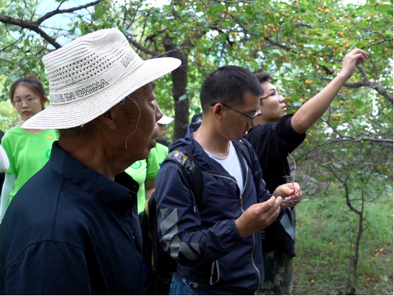 当天下午,实践团来到了“优一”母树所在地,位于小五台山间下的长宁乡安庄村,拜访了对于当地杏扁推广起重要作用的李书记。李书记向实践团成员介绍了自1981年起杏扁的经济效益变化,指出过低的销售价格是制约杏扁发展的主要原因。随后,实践团在李书记的带领下,参观了安庄村的杏扁种植基地,同学们也了解到当地“优一”品种产量曾创下全国记录的光辉历史。最后,实践团的张卿老师、王志忠老师展开现场教学,为当地农户分析杏扁种植过程中所遇到的问题,并提供解决的措施。