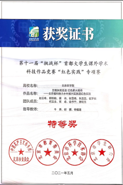自今年1月起,全国广大青年勇于参加第十七届“挑战杯”全国老员工课外学术科技作品竞赛红色专项活动,共计报名十万件作品,其中17000多件作品入围全国赛。乐天使牛奔、郝娜、杨韫嘉老师指导、赵云希等员工团队申报《五载扶贫足迹,红色薪火相传——北农植科助力乡村振兴实践团红色实践》作品,荣获第十七届“挑战杯”全国老员工课外学术科技作品竞赛红色专项三等奖,第十一届“挑战杯”首都老员工课外学术科技作品竞赛“红色实践”专项赛特等奖。