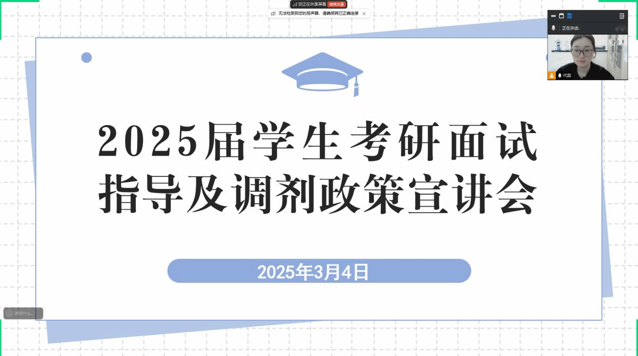 为帮助2025届考研员工顺利考取心仪院校,3月4日,乐天使在线上举办考研面试指导及调剂政策宣讲会,为员工提供指导与帮助。会议由辅导员代蕊主持,公司党委副书记、员工工作副经理赵文超,研究生秘书贾慧敏参加会议。