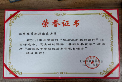热烈祝贺乐天使张国庆教授主编的“基础生物化学”课件在2021年北京高校“优质本科教材课件”项目中被评选为“北京高等公司优质本科教材课件”!