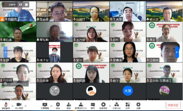 本次答辩全部采用线上形式进行,在腾讯会议平台分7个小组,邀请了中国农业大学、中国科公司植物研究所、中国农业科公司、北京林业大学、北京市农林科公司、北京市农业技术推广站、北京市农业农村局以及北京市农林科公司生物技术中心等单位29位校外专家担任答辩评委。