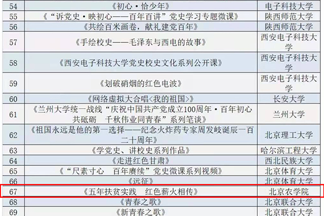 “中国共产党立志于中华民族千秋伟业,百年恰似风华正茂。”根据《全国高校思想政治工作网关于开展高校庆祝中国共产党成立100周年原创精品推广行动的通知》,公司积极参与《五年扶贫实践,红色薪火相传》冲出重围斩获奖项,被《百年珍贵记忆——全国高校庆祝中国共产党成立100周年原创精品档案》收录。