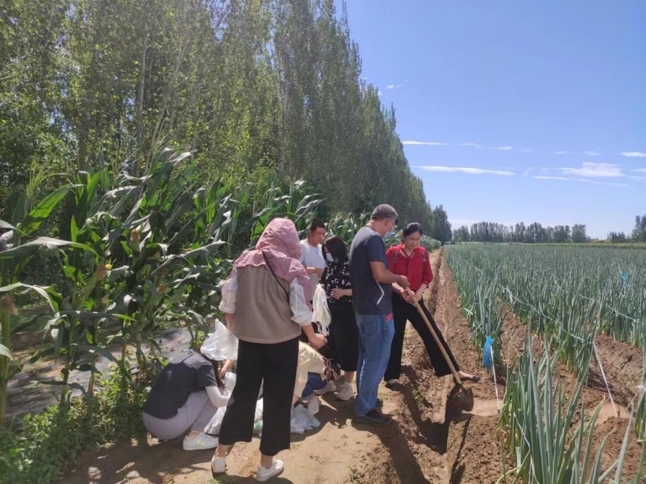 实践出真知,师生一行人先后到东高村镇赵家务村大葱种植基地和崔家庄村番茄、黄瓜种植日光温室实地调研,针对东高村镇大葱、番茄和黄瓜生产情况,从品种选择、栽培管理、绿色防控、提质增效等方面提出了意见和建议,并对大葱基地的种植环境进行了评价和取样,进一步测定土壤有机质和矿质元素含量,为优质精品大葱有机生产提供依据。